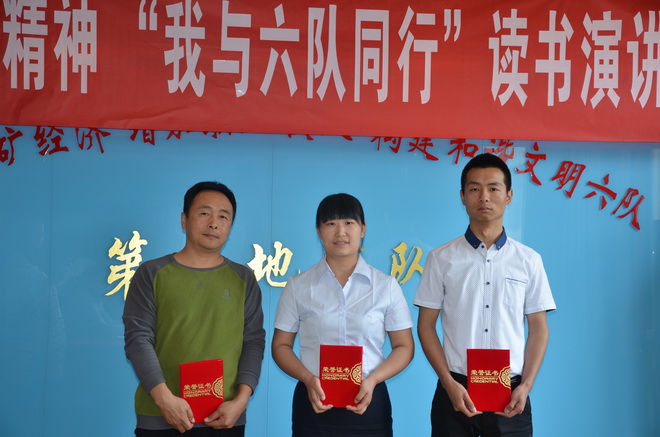 激揚的青春最美麗。選手們的激情演講深深地打動了在場的每一位評委和觀眾,贏得了一陣陣熱烈的掌聲。演講結束,勞動人事部選手馮雪榮獲一等獎,地調所選手夏含、雷扛分獲二等獎,后勤服務中心黃鷹、經濟工作部選手許婷婷、工程公司選手劉科科分獲三等獎。我隊隊長王根寶為獲獎選手頒發了榮譽證書。黨委書記王戰社為獲得2015年度的優秀團員、團干頒發了榮譽證書。